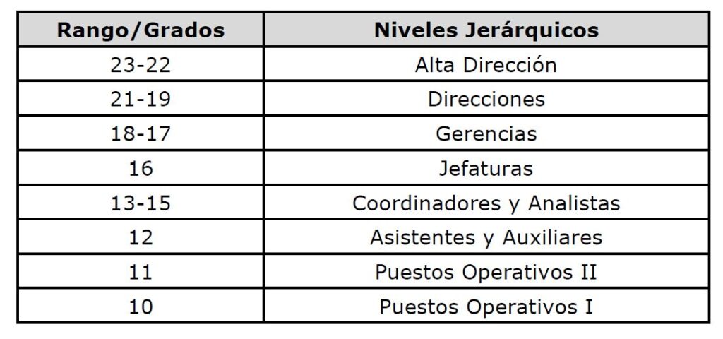 | Nivel Jerárquico | Puestos | Grado |